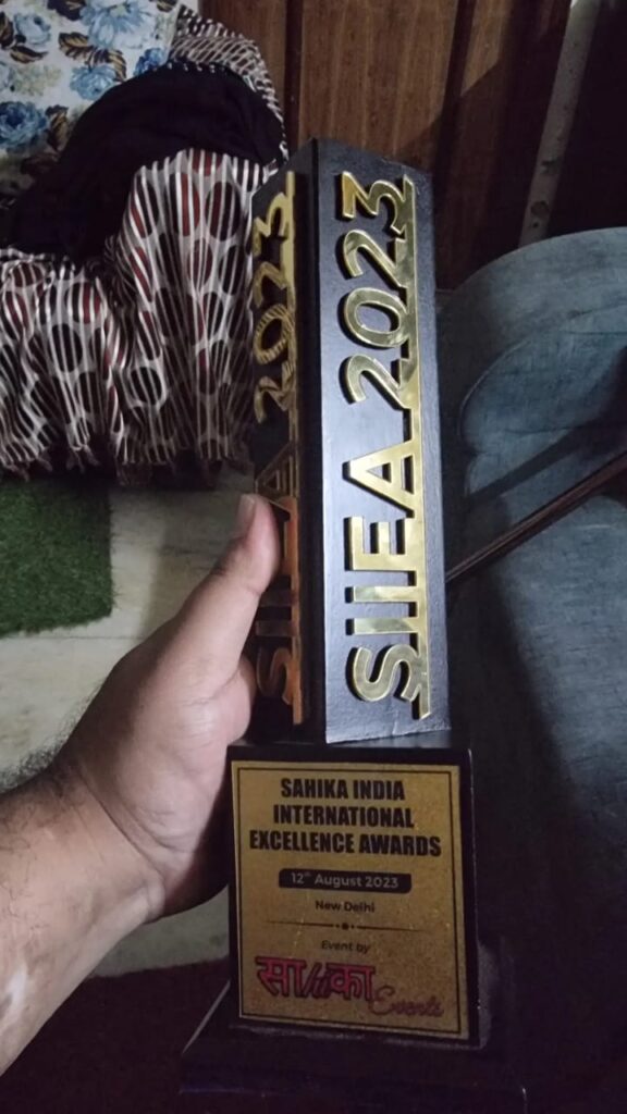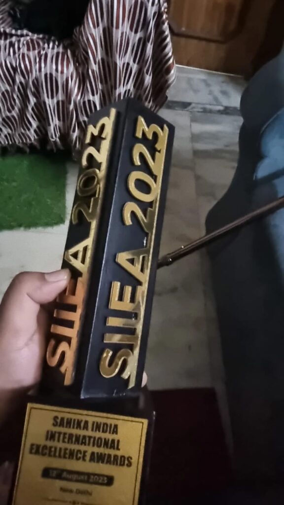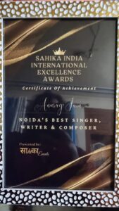 Big Award I was Awarded for the Best Singer Writer composer of Noida City by big Celebrity Actress Shamita Shetty Ji on 12th of August 2023