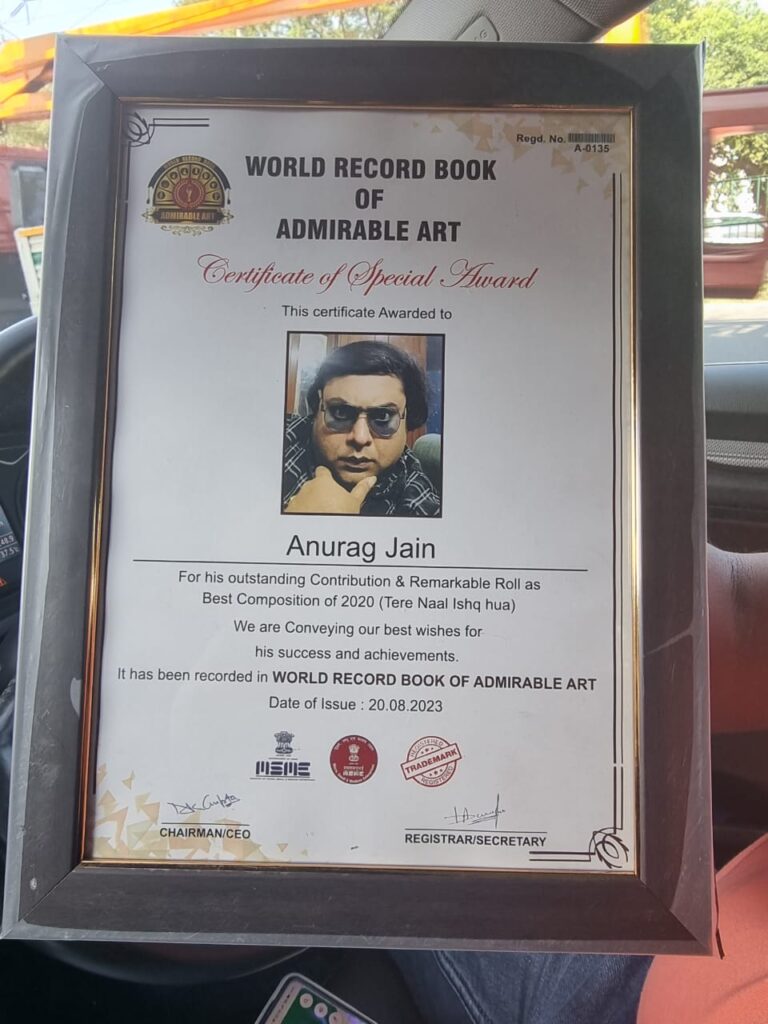 I was Awarded for my song tere naal ishq hua it’s a very Special Award as written in the trophy and certificate Award for the best composition song of 2020 tere naal ishq hua Award given by very big Celebrity Raza Muraad Ji